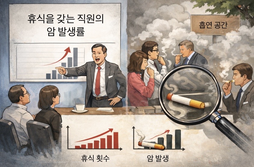 그래서 내용을 더 들여다보니 사망 원인이 흡연이다. 짧은 휴식 시간에 많은 직원이 담배를 피웠고, 그로 인해 사망률이 높아진 거였다.